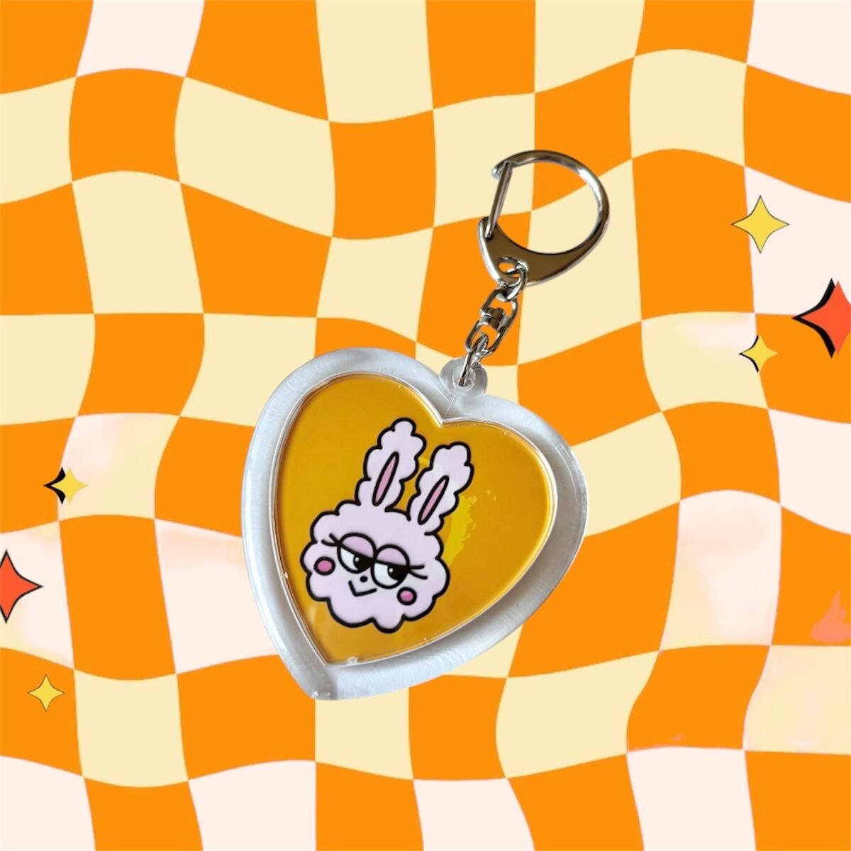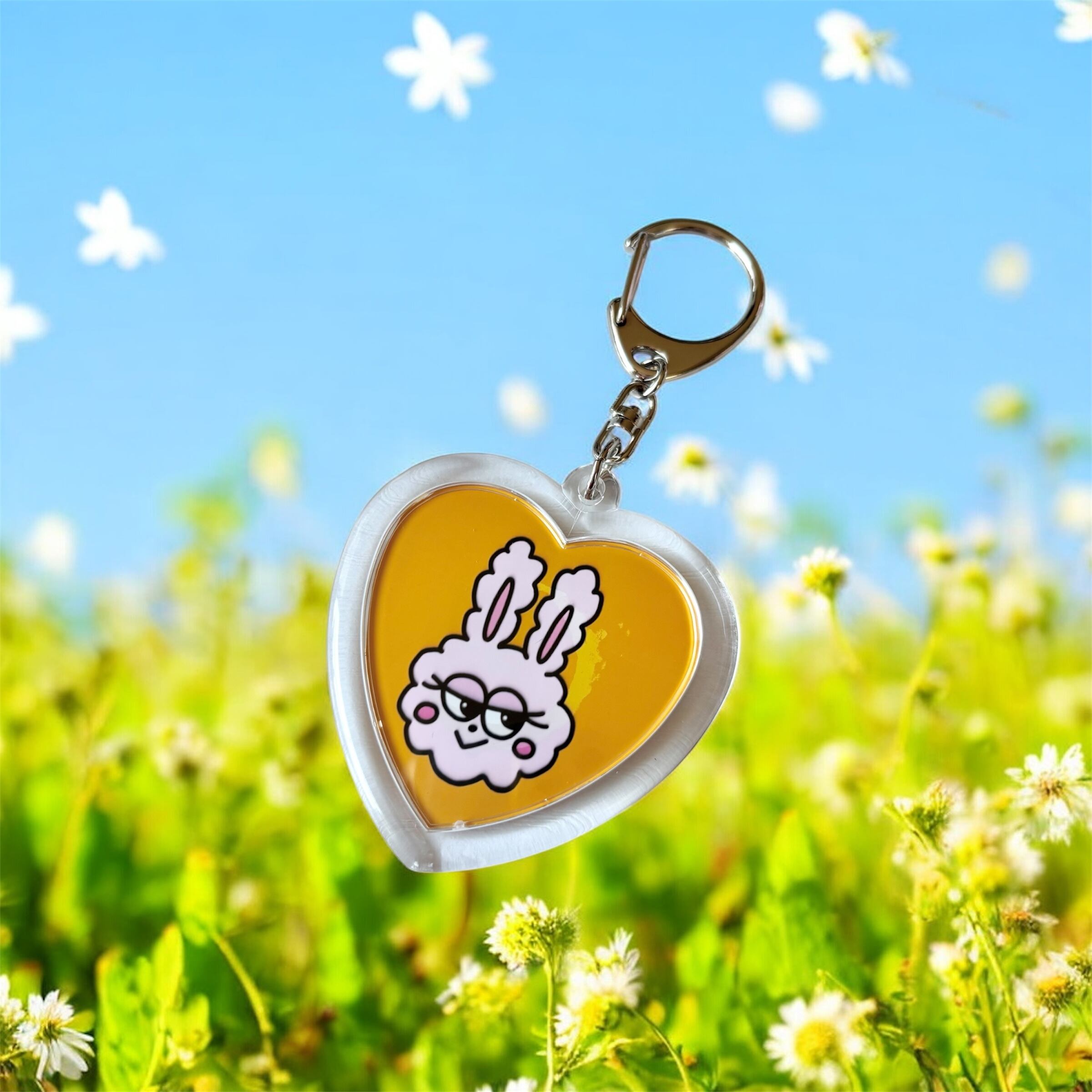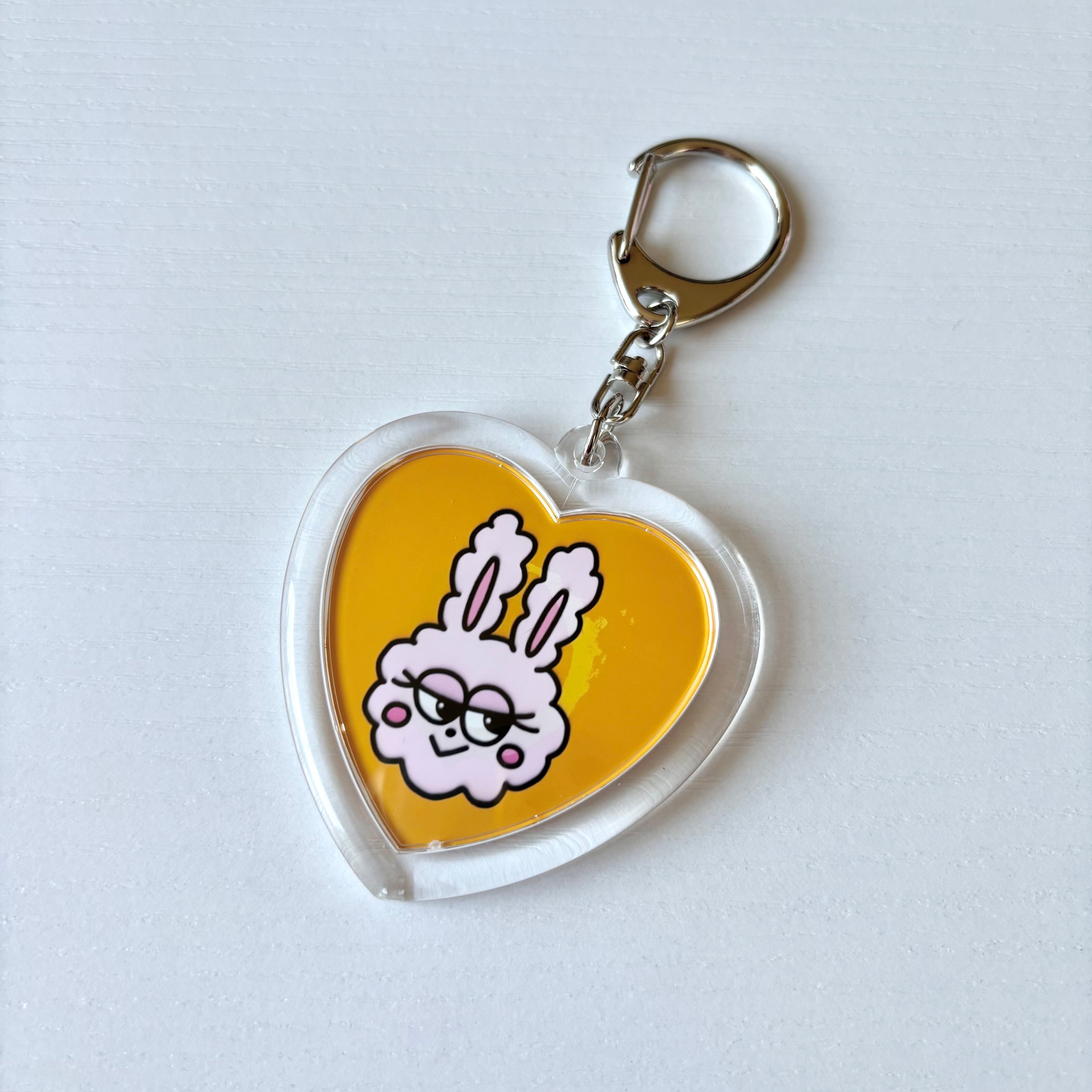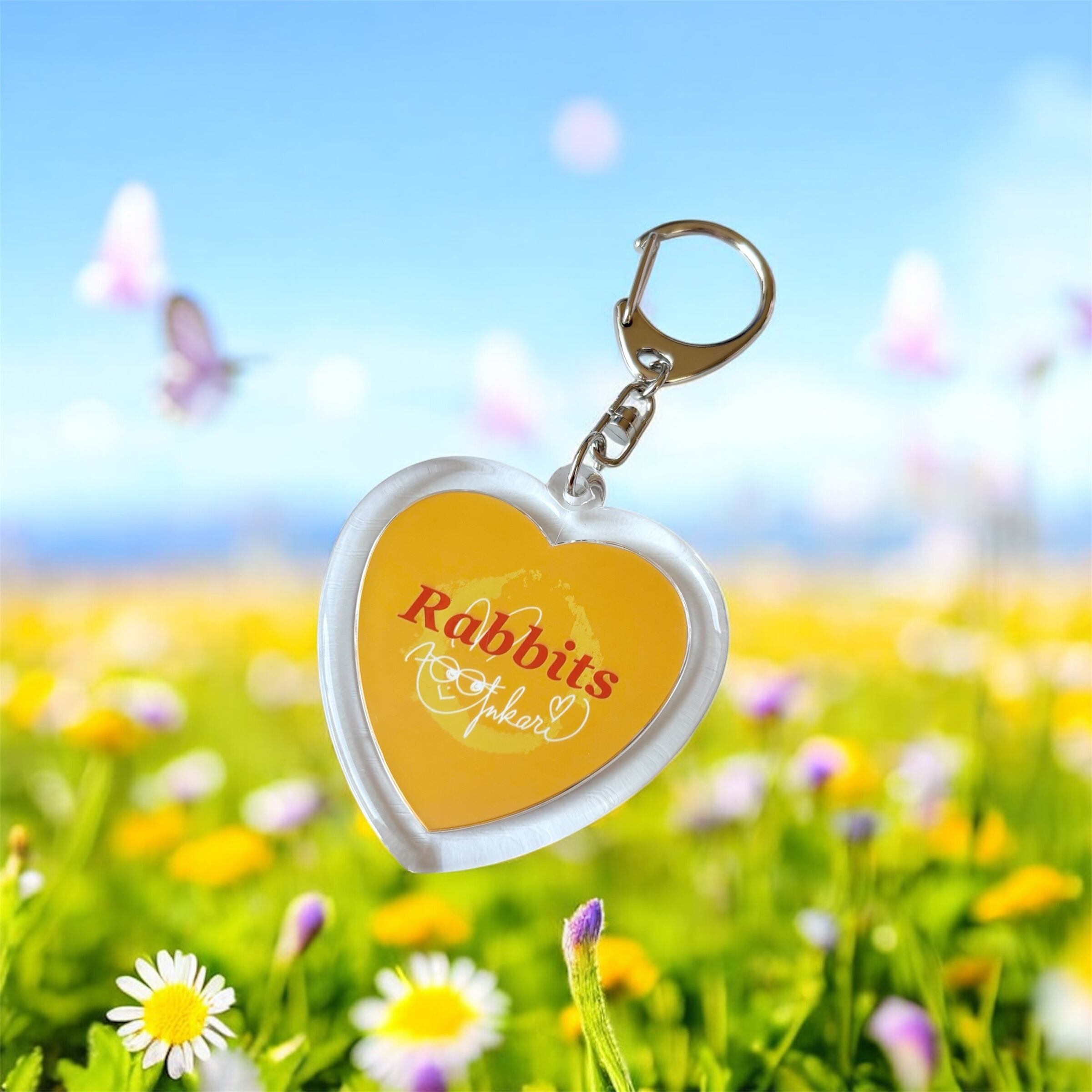 片面にはYUKARIのオリジナルキャラクター「ぴちゃん」、もう片面には応援してくれているみんなの総称「Rabbits」の文字とYUKARIのサインがデザインされたハート型キーホルダー。