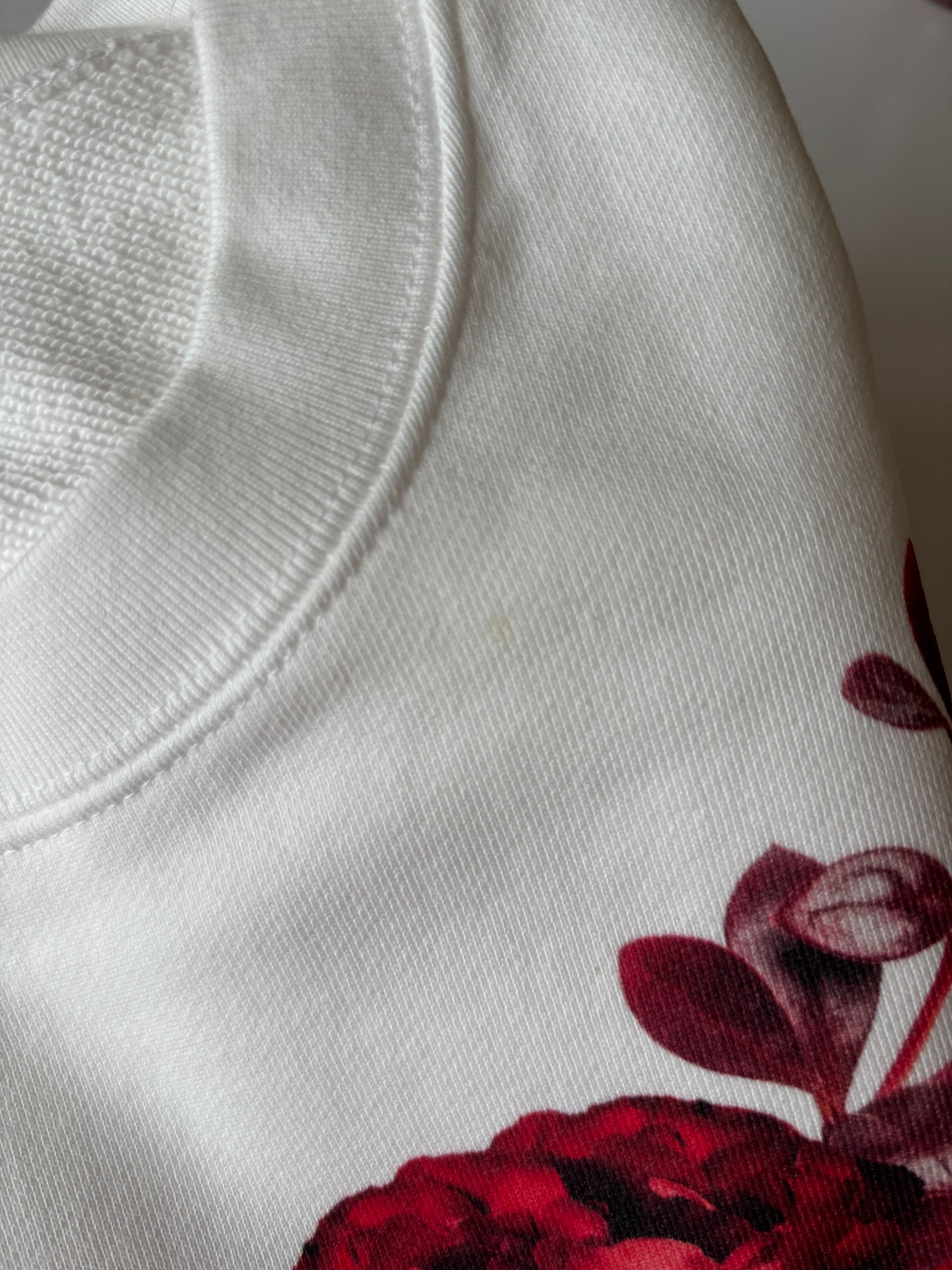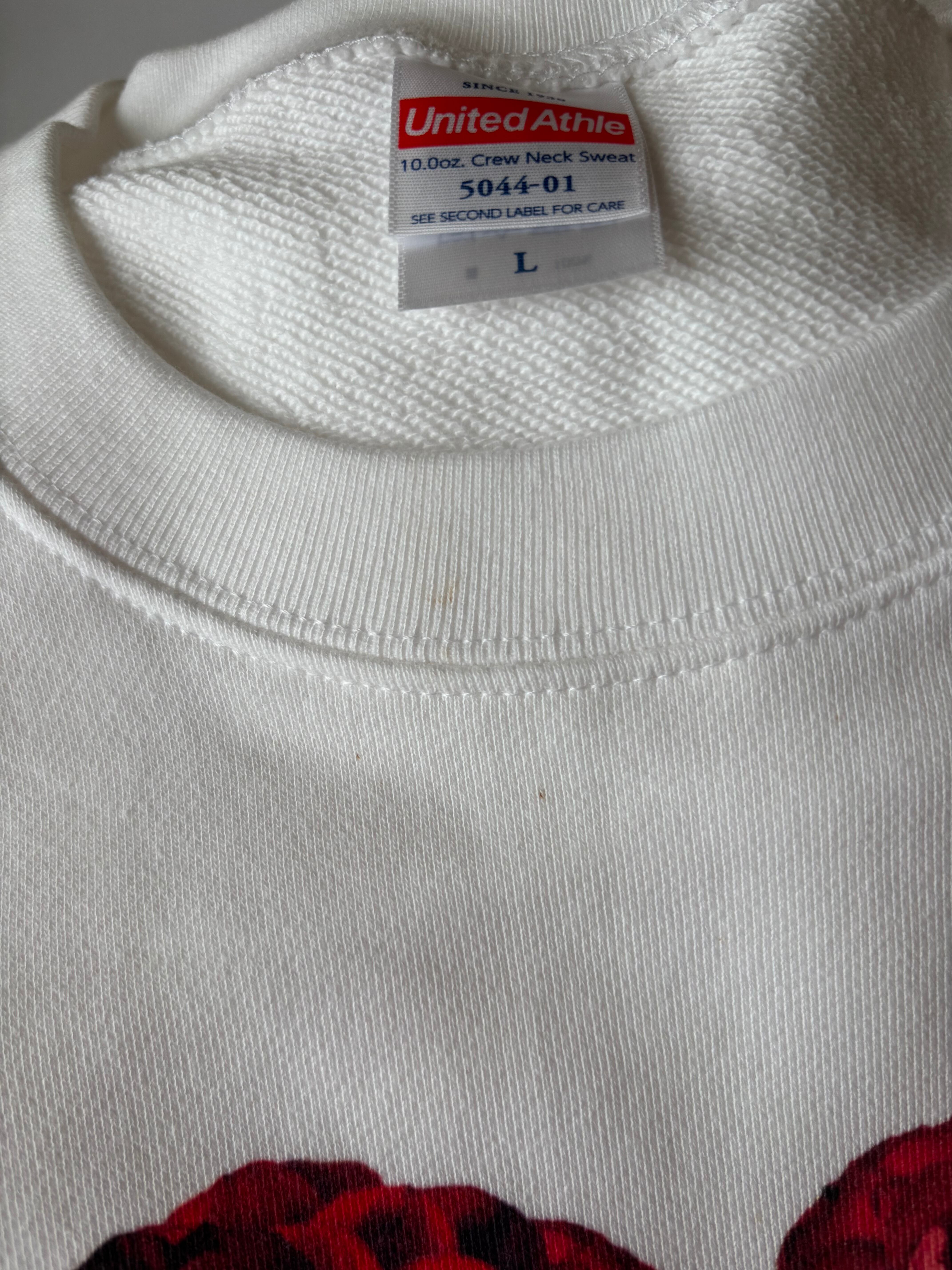 このトレーナーを作ったのは5年程前で、新品のまま保管しておりましたが改めて確認したところ数箇所にシミができており、保管期間も数年経ってしまったため下記の価格に値下げをして販売いたします。