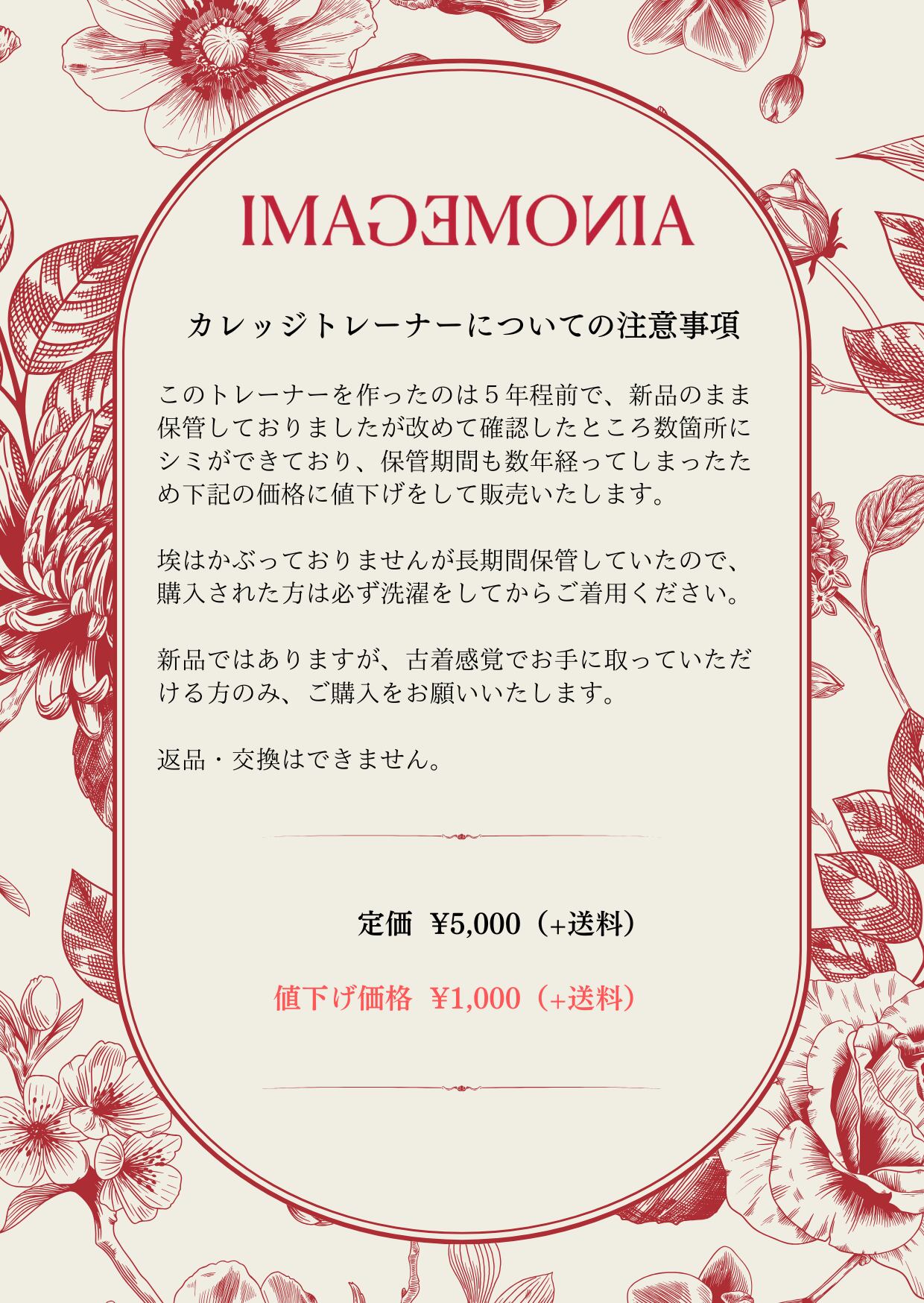 IMAGEMONIA カレッジトレーナー【訳あり商品】